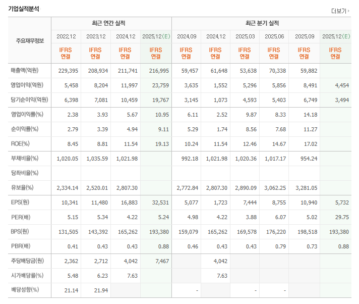 - 예상 배당금: 7,467원 (2025년 예상치 기준)
